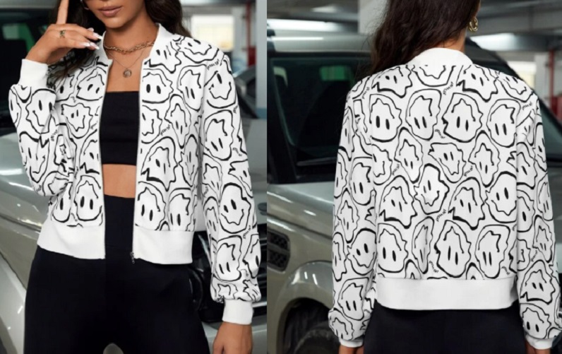 También puedes hacerte por prendas de abrigo por un módico precio. Este es el caso de esta cazadora con un estampado de caras sonriendo. Presenta cuello béisbol y se cierra por medio de una cremallera. Las mangas están ceñidas a la altura de los puños. Esta cazadora costaba 11 euros, pero en las rebajas de Shein la puedes comprar por solo 5 euros.