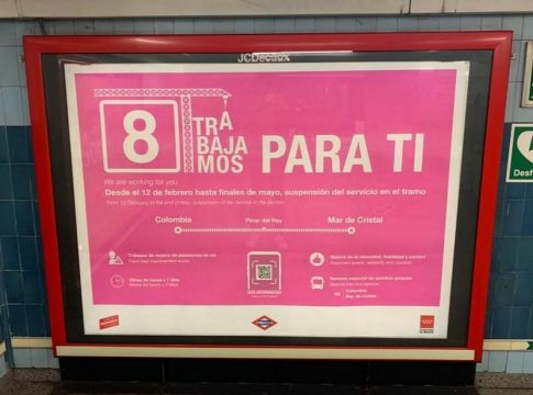 Metro de Madrid arranca este domingo las obras de la Línea 8 entre Colombia y Mar de Cristal que se prolongarán, previsiblemente, hasta el 30 de mayo.