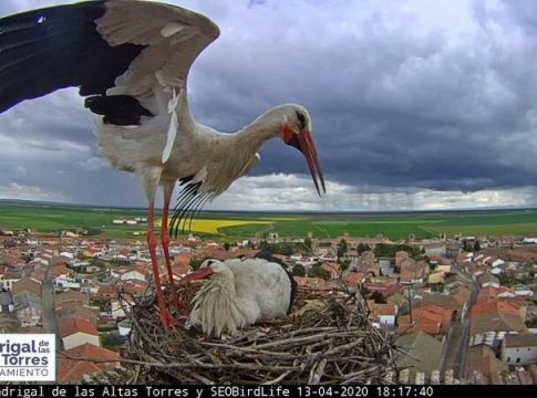 El Ayuntamiento de Madrigal de las Altas Torres (Ávila), en colaboración con SEO/BirdLife, vuelve a emitir en directo la vida de dos nidos de cigüeña blanca desde la torre de la iglesia de San Nicolás de Bari gracias a la instalación de dos webcams cuyas imágenes se pueden seguir en Youtube.
