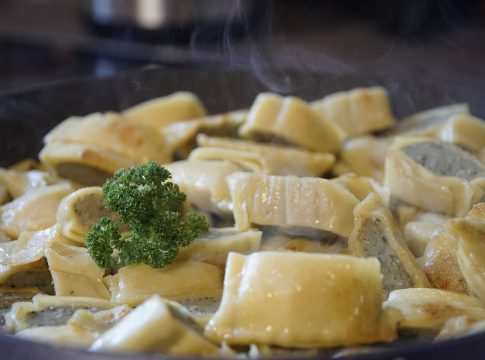 Allí, se pueden degustar unos deliciosos Zlikrofi, es decir, raviolis caseros típicos de la zona entre Friuli-Venecia Julia y Eslovenia rellenos de patata, lardo, panceta y cebolla. Se sirven ligeramente planchados acompañados con la reducción de nuestro caldo de carne y unas migas de pan frito.