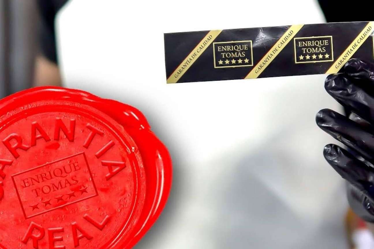 Para garantizar la seguridad de sus productos, la empresa coloca un precinto de calidad o etiqueta negra alrededor de la pezuña, que hace referencia a todos los procesos de control que se realizan como garantía de que el producto es apto para el consumo. Antes del proceso de curación, Enrique Tomás, escoge solo las piezas de la mejor calidad y acaban en sus bodegas a la temperatura adecuada el proceso de curación de forma totalmente artesanal hasta que están listas para ser comercializadas.