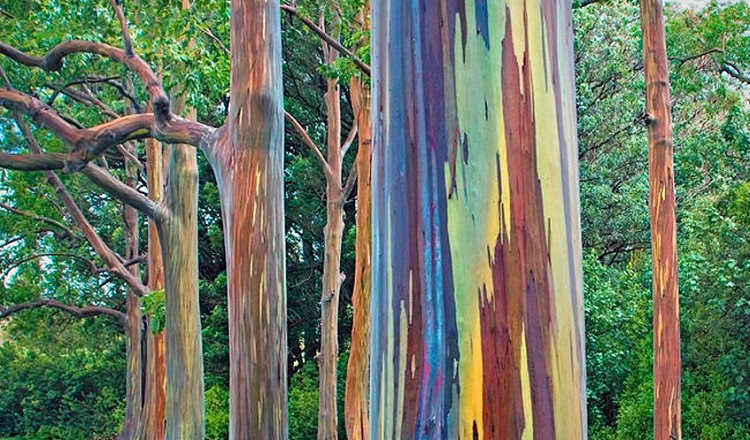 Porque en la imagen notamos cómo los eucaliptos cuentan con una selección de colores en la parte de sus troncos. Unos colores que han llegado gracias a los cambios de la corteza. Ésta va mudando el color según su parte. Por eso, aunque parezca un lienzo, es totalmente un fenómeno natural.