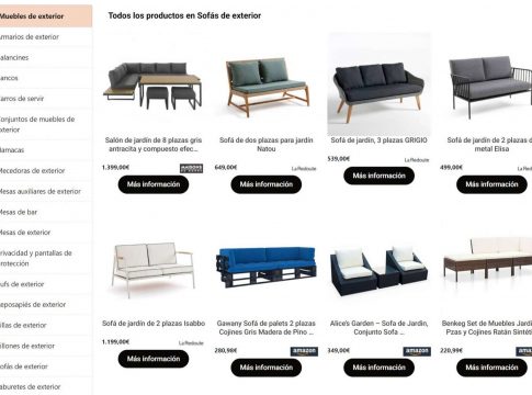 De esta manera, el usuario no tiene que desplazarse entre miles de páginas para encontrar el mueble que desea, porque han concentrado la oferta de cuatro portales diferentes: Amazon, Maisons du Monde, La Redoute y Leroy Merlín. En un solo sitio web, es posible ver todos los productos de las anteriores firmas de muebles mencionadas en sus diferentes categorías.