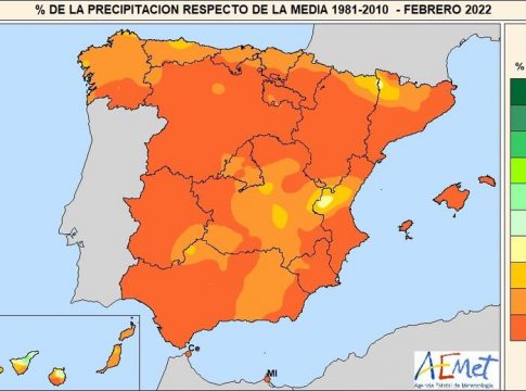 Así, febrero de 2022 es el tercer febrero más cálido del siglo, por detrás de los de 2021 y 2020; de modo que los tres últimos han sido los más cálidos. En el cómputo de la serie histórica, que comenzó en 1961, este ha sido el octavo más cálido.
