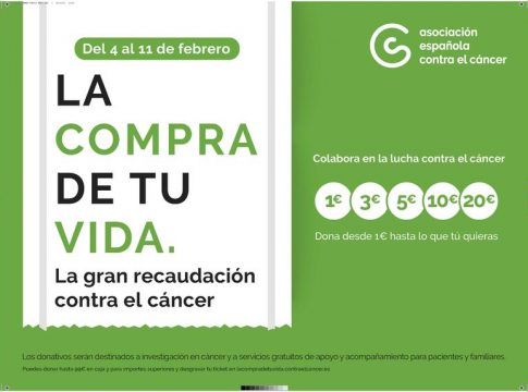 La Asociación Española Contra el Cáncer (AECC) ha cerrado con éxito la segunda edición de 'La compra de tu vida', una acción en la que la población ha batido récord de participación volcándose para frenar las desigualdades que existen en torno al cáncer aportando en donativos más de 875.000 euros en las líneas de caja de supermercados y tiendas de España.