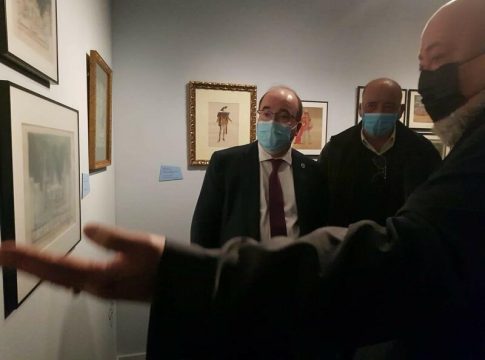 El ministro de Cultura y Deporte, Miquel Iceta, ha inaugurado este miércoles la exposición 'Del escenario a la pantalla. Los diseños de José Luis López Vázquez' organizada con motivo del centenario del nacimiento del artista "fundamental del cine español" (Madrid, 11 de marzo de 1922 - 2 de noviembre de 2009).