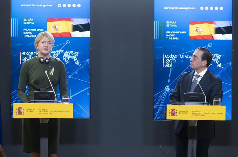 Albares ha recibido este viernes en Madrid a su homóloga de Estonia, Eva-Maria Liimets, con la ofensiva militar rusa sobre Ucrania como principal punto en la agenda. Ambos han coincidido en que Putin ha violado el Derecho Internacional y no ponen límite a los pasos que puede dar Rusia a partir de ahora.