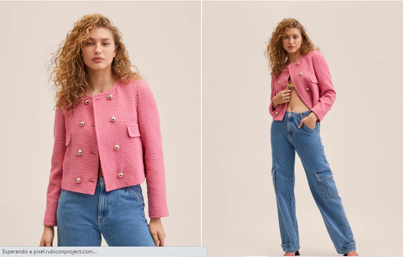 En último lugar, te mostramos una chaqueta de tejido tweed en color rosa pastel. Esta prenda es de estilo traje con cuello redondo y hombreras. Presenta un cierre de botones, que son de estilo joya. Además, cuenta con dos bolsillos de solapa en el pecho. Mango lo ha puesto a la venta por 59'99 euros.