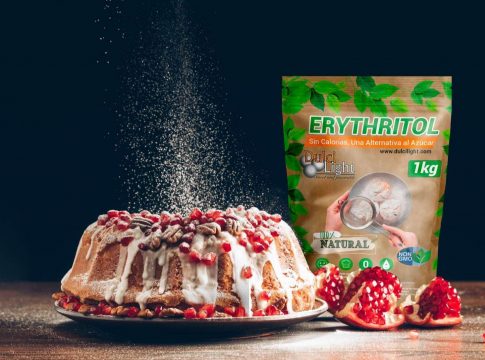 130 gramos de eritritol endulzan como 100 gramos de azúcar. El eritritol no eleva el índice glucémico y no deja mal sabor en la boca, como sucede con otros endulzantes del mercado.
