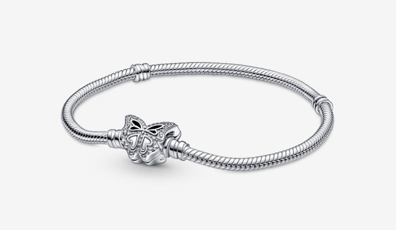 La pulsera más icónica de Pandora se ha actualizado con nuevos diseños. En este caso, su cierre tiene forma de mariposa. Los detalles recortados, los corazones en relieve y las brillantes circonitas cúbicas transparentes aportan profundidad y dimensión a las alas de la mariposa. Gracias a la forma de cadena de serpiente, podrás personalizar la joya a tu gusto con hasta 18 charms diferentes. Puedes comprarla por 69 euros.