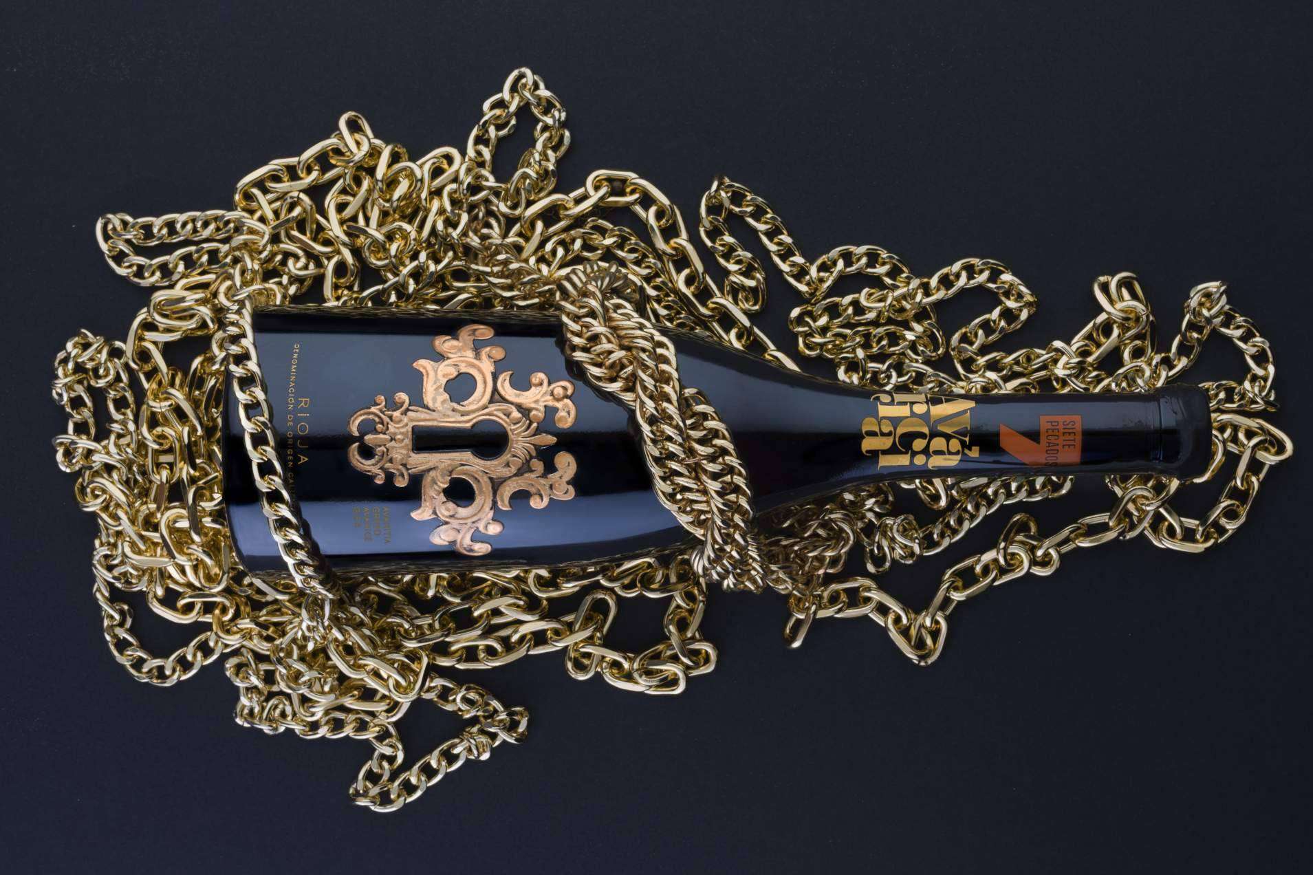 Por ejemplo, el vino llamado Lujuria, viene semi envuelto con una media de red que sugiere el significado de su nombre. A su vez, el que representa a la Envidia está cubierto con una etiqueta dorada brillante que genera un efecto similar al de un espejo, como si quisiera atrapar todo lo que hay en su entorno.