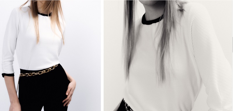 Para comenzar el repaso a las novedades de esta marca, te mostramos una camiseta de color blanco con un ribete negro en las mangas y el cuello que le da una nota de contraste. La prenda es de manga larga con cuello caja. Además, presenta una abertura trasera en el centro de la espalda, por lo que va a dejar parte de tu piel al descubierto. Sfera lo ha puesto a la venta por 19'99 euros.