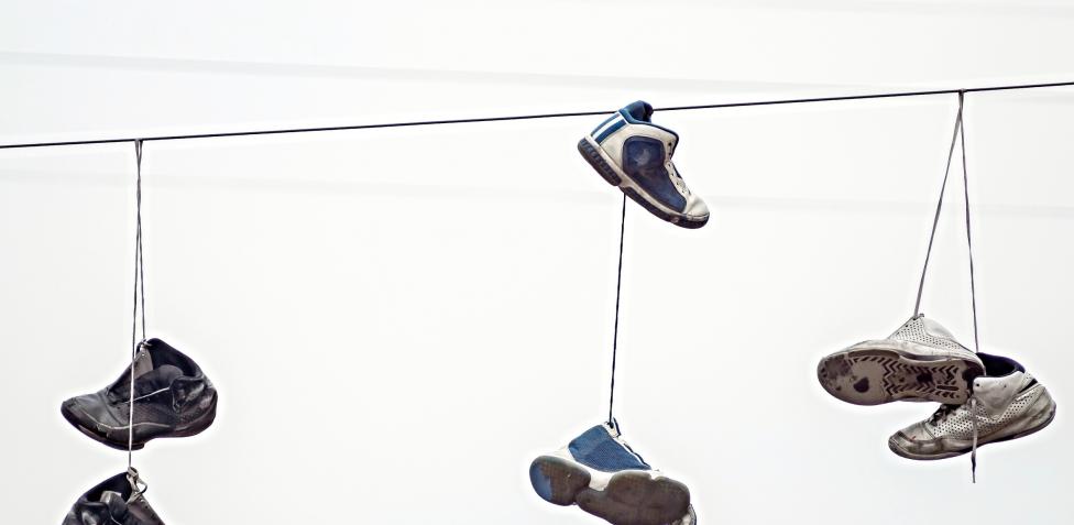 5Para celebraciones colgaban las zapatillas en los cables de luz