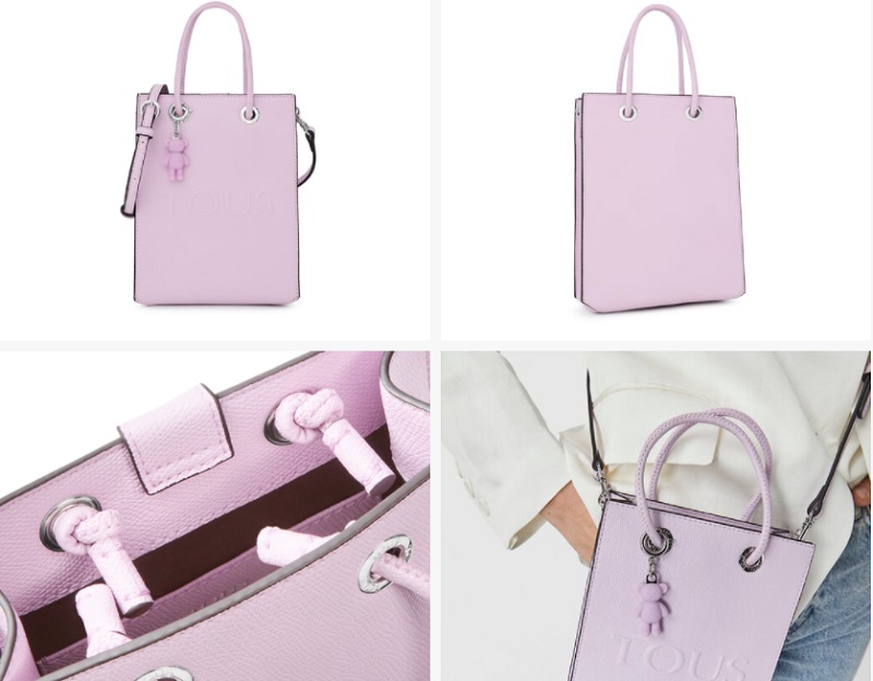 Como puedes comprobar, la marca catalana vende bolsos de todos los estilos y tamaños. Volviendo con los pequeños, la firma de joyería te propone uno mini de piel sintética con acabado saffiano en color lila. Cuenta con un cierre con botón magnético y un asa de bandolera desmontable y ajustable. Posee un bolsillo interior abierto y un detalle de oso colgante. Puedes comprarlo en las tiendas de Tous o en su página web por 89 euros.