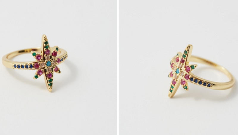 A juego con las joyas anteriores, puedes cerrar el conjunto con una estrella entre tus dedos. Se trata de un anillo meñiquero, es decir, que está pensado para el dedo meñique. Cuenta con un aplique de una estrella decorada con abalorios de varios colores. No dejes pasar la oportunidad de llevar el dedo más pequeño de la mano con este magnífico anillo. Sfera lo tiene a la venta por solo 7'99 euros.