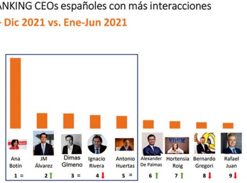 El último ‘Panel Epsilon Icarus Analytics de CEOs’ en Linkedin en 2021, que analiza a 115 directivos españoles, desvela que los tres ejecutivos con más interacciones en la red social son Ana Botin (Banco Santander), también la que más seguidores tiene, seguida de José María Alvarez Pallete (Telefónica) y de Dimas Gimeno (Presidente de Kapita y fundador de WOW).