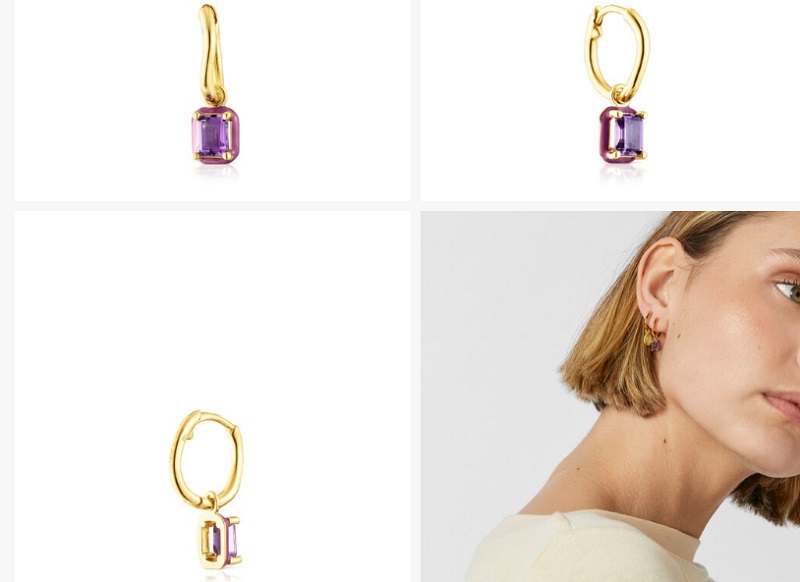 Muy parecida a la propuesta anterior, es este pendiente realizado en plata vermeil. Podrás combinarlos para darle una nota de contraste a tu oreja. En este caso, el aro presenta una gema de amatista con forma octogonal, que está esmaltada en color morado. Lo mejor es su precio, ya que está hecha con los mejores materiales, y Tous la ha puesto a la venta por 79 euros.