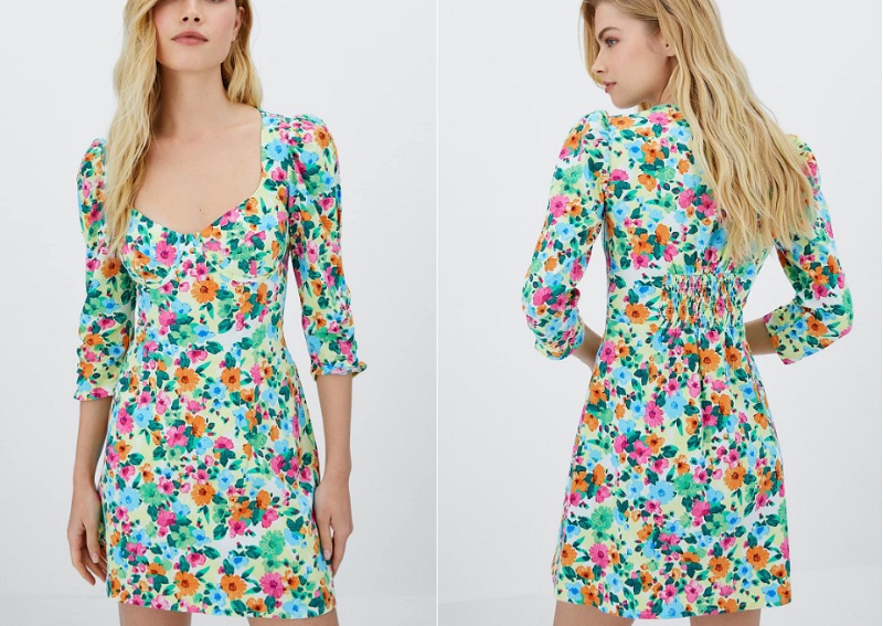 Puedes visitar sus tiendas para probarte las prendas o comprar a través de su página web y aplicación para móvil. Hay muchas opciones a tu disposición. A continuación, te mostramos el vestido corto de flores que es la mejor novedad de Stradivarius.