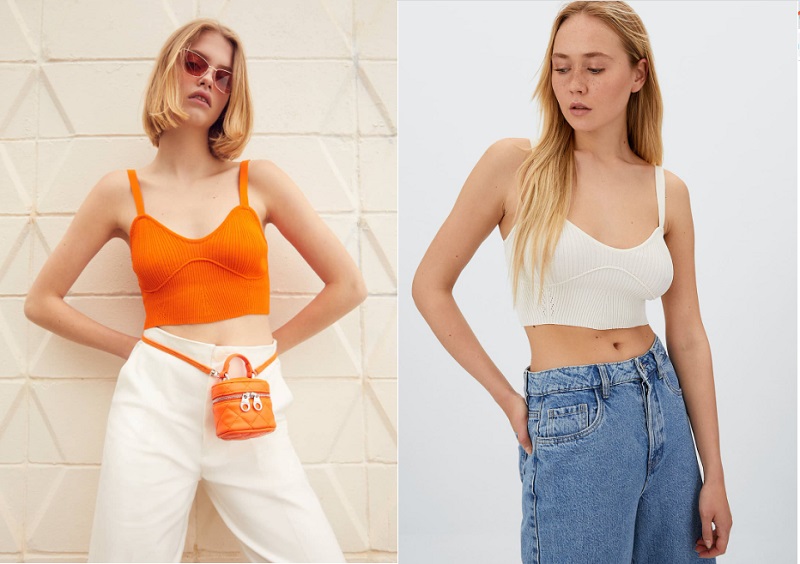 La siguiente propuesta de la marca de Inditex es un top de punto de estilo corsé. La prenda es de tirantes y presenta un escote con forma de corazón. Además, cuenta con detalle de costuras en la zona del pecho. Está disponible en varios colores: naranja, crudo y negro. Lo mejor es su precio y es que apenas cuesta 9'99 euros en las tiendas de Stradivarius.