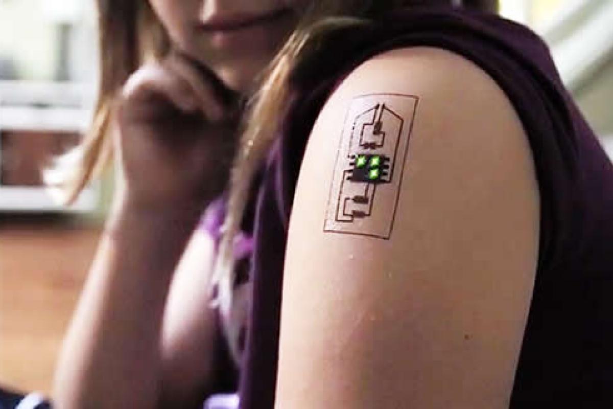 Después del invento de los tatuajes OLED, el tatuaje electrónico es un método que recopila, además de analizar, los datos referentes al cuerpo humano, y todo ello es aprovechando los avances de la tecnología en el campo de la biotecnología. Y todo ello radica en la tinta, que se aplica en la piel, la cual cuenta con sensores y rastreadores muy diminutos, esta es un conductor de electricidad q1ue envía y recibe información.