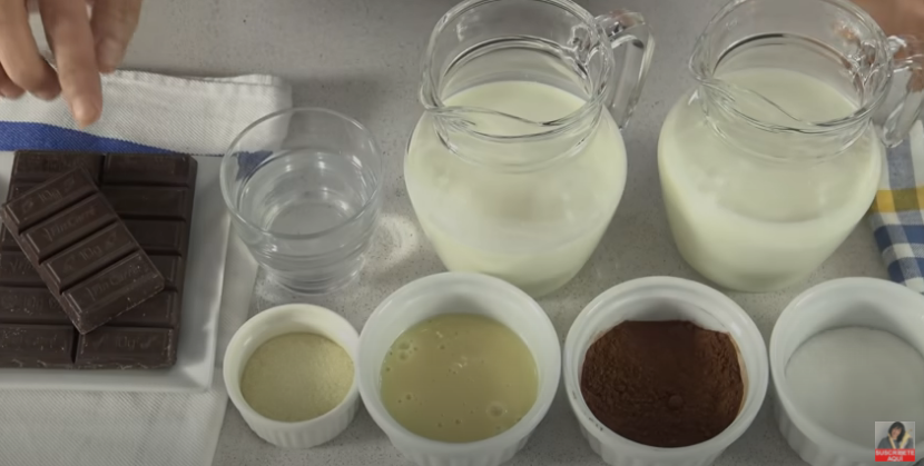 Necesitarás: 150 gramos de chocolate para postres, 25 gramos de cacao puro en polvo, 375 ml de leche, 300 ml de nata, 45 gramos de azúcar, 75 gramos de leche condensada, 15 gramos de gelatina en polvo o 12 láminas de gelatina sin sabor y 60 ml de agua. Tal como ves, son muy pocos los ingredientes que necesitarás.