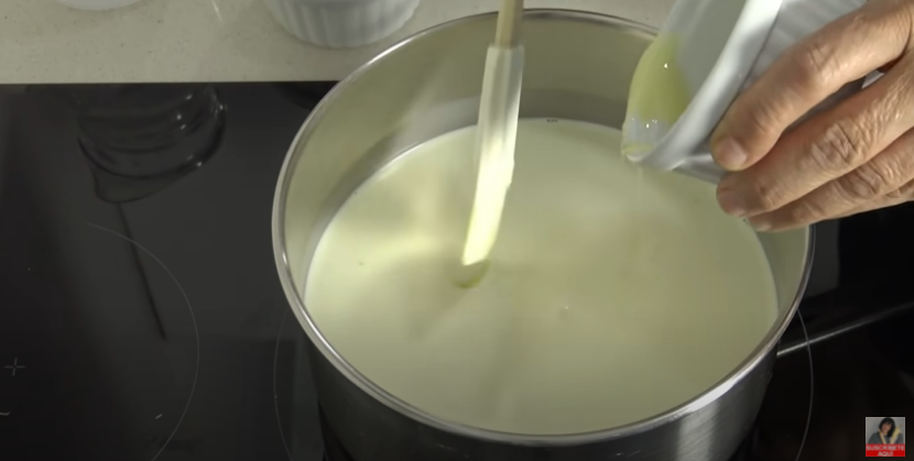 Pon una olla al fuego medio y vierte la leche. Incorpora también la nata, azúcar, leche condensada y deja que se vaya calentando poco a poco.