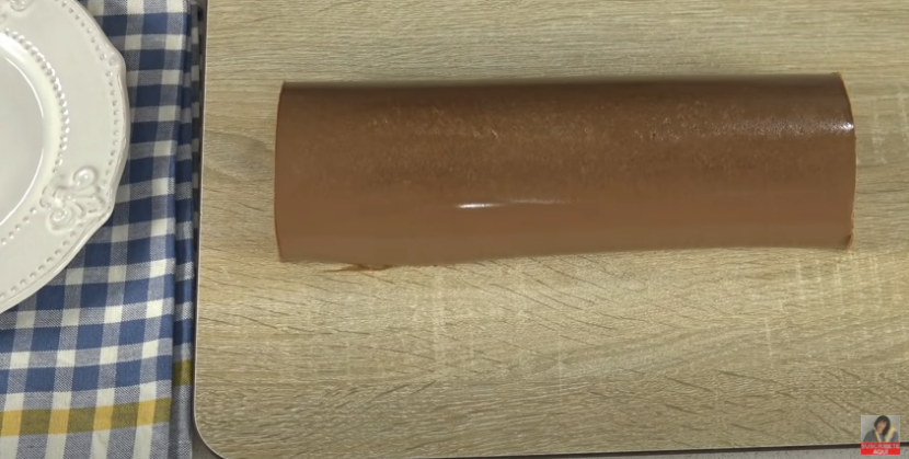 Al terminar de llenar el molde con la mezcla para preparar el pastel mousse de chocolate, cubre la mezcla con un trozo de papel film para evitar que se forme costra por encima.