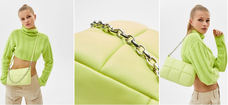 En último lugar, te mostramos un bolso acolchado. Cuenta con doble asa: una de mano con forma de cadena y otra más larga para que te lo cuelgues de los hombros. Se cierra mediante una cremallera. Está disponible en color lima y en camel. Puedes comprarlo por 11'19 euros cuando antes costaba por 15'99 euros.