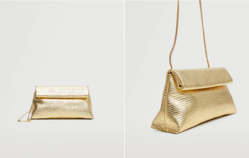 En último lugar, te mostramos una bandolera con textura dorada. También puedes conseguirla en color blanco, negro o lima. Es una gran opción de bolso de noche. Tiene un asa larga que recuerda a una cadena. Presenta un cierre de solapa. Puedes comprarlo en las tiendas de Mango o en su página web por tan solo 19'99 euros.