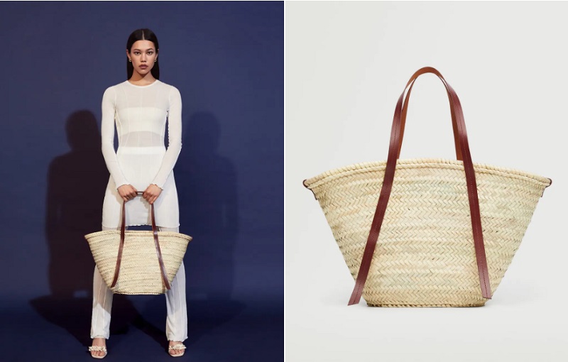 Como puedes apreciar, la rafia se ha convertido en tendencia durante esta temporada. Este tejido inunda todo tipo de diseños. En este caso, nos encontramos ante un capazo con detalles de piel. Cuenta con doble asa corta y una bolsa interior para que tus objetos vayan protegidos. Se cierra mediante una cremallera y un lazo. Está disponible con los asas en color chocolate o en naranja. Puedes comprarla en las tiendas de Mango por 59'99 euros.