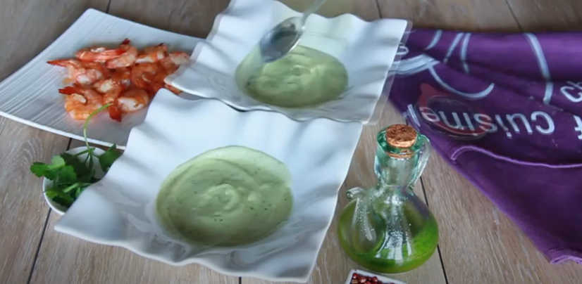 6Presentación de la crema de aguacate con langostinos