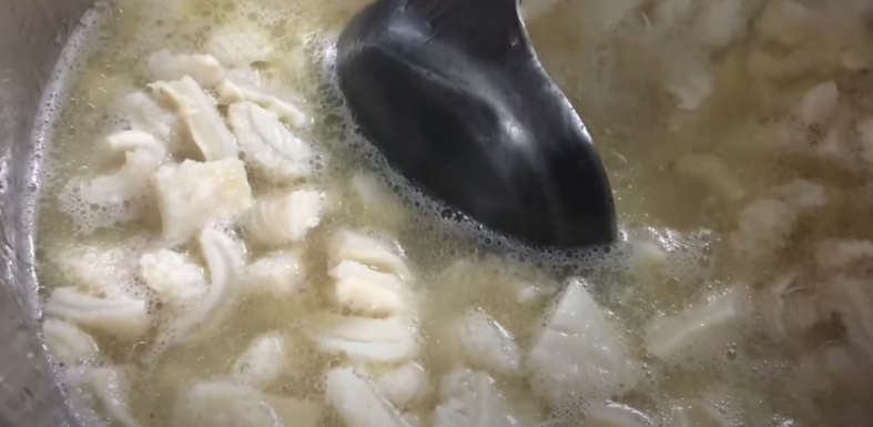 Una vez que el caldo esté caliente, añade los callos previamente cocidos y picados del tamaño que prefieras. Lo recomendable es que no sean más grandes que un bocado, para que sean cómodos al comerlos.