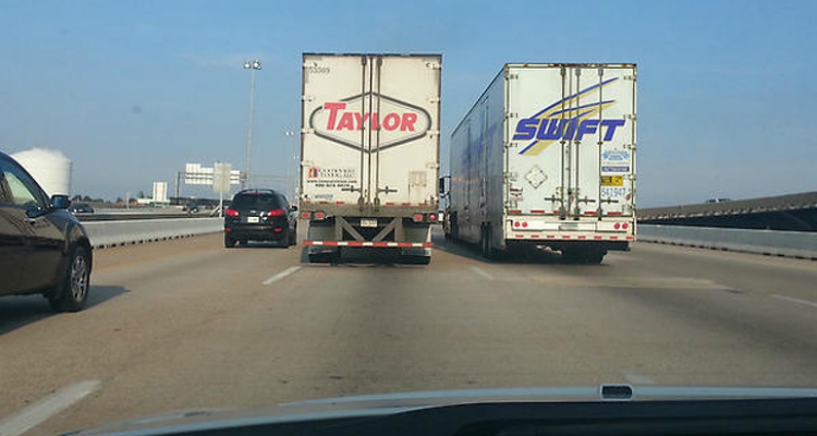 6Taylor Swift en la autopista con dos camiones