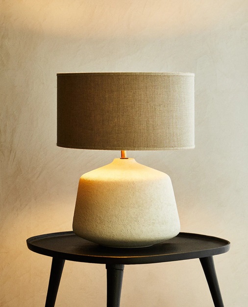 Es lo que vemos, directamente, con esta primera lámpara auxiliar para el dormitorio, la cual está hecha con una base en material de cerámica, al tiempo que su pantalla es en color natural. Esta le dará un toque de elegancia minimalista con aires rústicos en el dormitorio o en el salón con esta lámpara auxiliar de sobremesa, que pasa de 120 a 89,99 euros con los Special Prices de Zara Home.