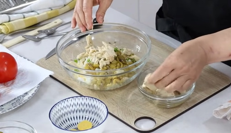 El siguiente paso de esta receta es desmigajar el atún. Si lo has comprado en aceite, escúrrelo antes de añadirlo para que no haya un exceso de grasa en el relleno. Utiliza las manos para ir troceando este ingrediente de una manera más sencilla. También le tienes que incorporar un poco de maíz dulce, aunque si este alimento no te gusta, puedes prescindir de él. Vamos a preparar la mayonesa que acompañe los tomates rellenos...
