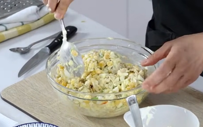 Una vez que tengas incorporada la mayonesa al bol, mezcla todos los ingredientes. Remuévelo bien para que tanto la salsa como los alimentos se repartan por todo el conjunto. Con la ayuda de una cuchara, vete poniendo su contenido dentro de los tomates. Apriétalo para hacer hueco y que entre más cantidad. Ya estamos llegando a la recta final de la receta de los tomates rellenos...