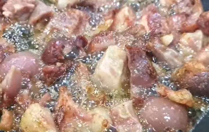 Solo una pequeña cantidad de aceite es necesaria para comenzar la fritura de los morros, ya que estos suelen liberar de manera natural una buena cantidad de grasa que contribuye a la fritura.