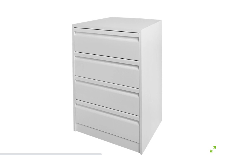 En último lugar, te mostramos una cajonera de cuatro alturas con un acabado blanco. El frente tiene el tirador integrado y está fabricada en aglomerado recubierto de melamina. Los cajones incluyen guías metálicas de gran resistencia. Este mueble está recomendado para ordenar la ropa y complementos dentro o fuera de tu armario. Puedes comprarla en las tiendas de Leroy Merlin por 65'99 euros.