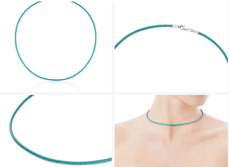El cuero va coloreado en tono turquesa para darle un toque llamativo a tu look. Mide 40 centímetros de largo y cuenta con dos cierres de plata de primera ley para que lo ajustes a tu cuello. Puedes hacerte con esta gargantilla de la marca catalana por tan solo 14€, y es que está rebajada ya que antes costaba 21€.