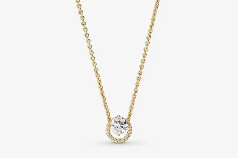 A juego con el anillo anterior, puedes hacerte con este collar tan elegante. La joya se presenta con un recubrimiento electrolítico de oro de segunda ley de 14 quilates combinando lo clásico con lo contemporáneo. Las tradicionales gemas engastadas del halo se han cambiado por una gema descentrada que aporta a la pieza una imagen única. Pandora lo vende por 179 euros.