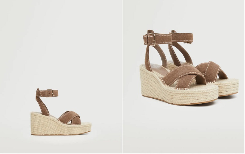 En último lugar, te mostramos una propuesta de calzado para que los lleves con todas estas prendas. Se trata de unas sandalias hechas de piel de bovino al 100%. Las piezas son de cuña con suela de yute. Cuenta con pulsera en el tobillo con cierre de hebilla para que la ajustes a tu medida. El tacón mide 10 centímetros. Mango las ha puesto a la venta por 39'99 euros.