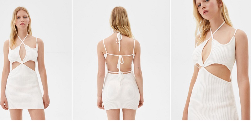 Otra opción de la firma de Inditex es un vestido de punto de color blanco. El modelito cuenta con tirantes que se cruzan en el cuello. Ademas de dos lazadas en la espalda para que te aporten mayor sujección y seguridad. Vas a pasártelo genial llevando esta prenda de festival. Puedes adquirirlo en las tiendas de Bershka por 25'99 euros.