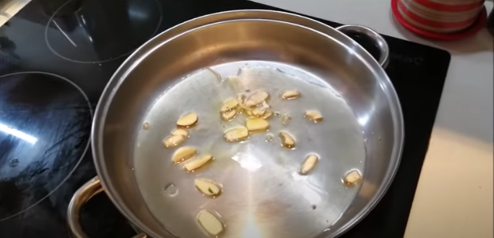 Una vez que el aceite esté caliente, pon los dientes de ajo fileteados para que se vayan sofriendo por aproximadamente 5 minutos.