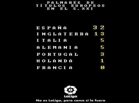Con el eslogan ‘No es LaLiga, pero como si lo fuera’, LaLiga ha lanzado una campaña en diferentes medios de comunicación y en las marquesinas de algunas ciudades españoles que reconoce el éxito de los clubes españoles en las competiciones europeas y con la que tratan de remarcar que no hay una competición igual en el viejo continente tan competitiva como LaLiga.