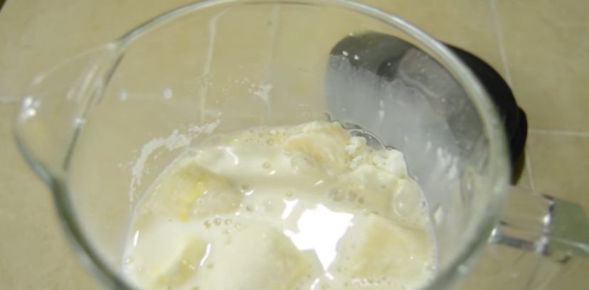 Para avanzar con la preparación de la mezcla de las natillas de plátano, añade el huevo, la maicena y comienza a triturar de nuevo.