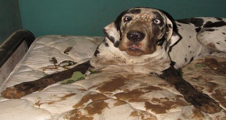 Nuestra lista de mascotas que la liaron se está acabando. En el segundo puesto, tenemos a un lindo dálmata. “No estoy sucio, solo son nuevas manchas” es lo que dijo antes de que le tomaran la foto. A nosotros nos parece poco creíble su historia, pero le daremos el beneficio de la duda. Sin embargo, alguien necesitará un nuevo colchón.