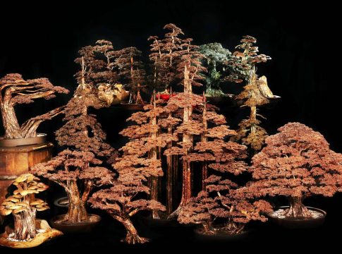 Impresionantes esculturas de bonsáis a base de cobre