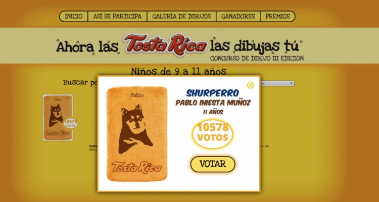 Hace unos años TostaRica tuvo una idea muy buena para su nueva imagen, dejar que el público eligiese. Para ello convocó un concurso, que estaba orientado a los niños, y que consistía en subir un dibujo a la web dejar que el resto de internautas votaran la nueva imagen de la galleta.