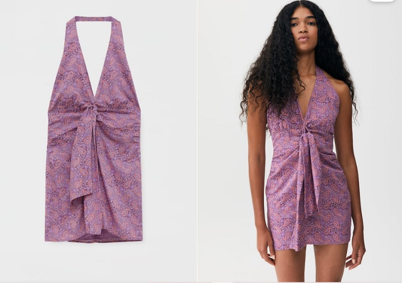 Como puedes comprobar, el color rosa es el protagonista de la mayoría de las novedades de la marca de Inditex. Para muestra, este vestido estampado con cuello halter y escote en forma de pico. Además, presenta la falda anudada a la cintura con la lazada cayendo en el centro de la prenda. Puedes hacerte con este modelito en las tiendas de Pull&Bear por 22'99 euros.
