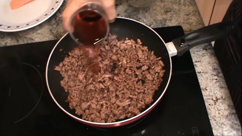 No dejes de menear la carne para que vaya soltándose. En cuanto notes que ya salpica, es decir, que salta, y que está dorada, viértele el vaso de vino. Tapa la sartén para que reduzca y que se evapore el alcohol. Bájale un poco el fuego para que no hierva muy rápido. Mientras se va cociendo, puedes ir sacando las patatas cocidas de la cazuela. La receta del pastel de patata y carne es muy sencilla...